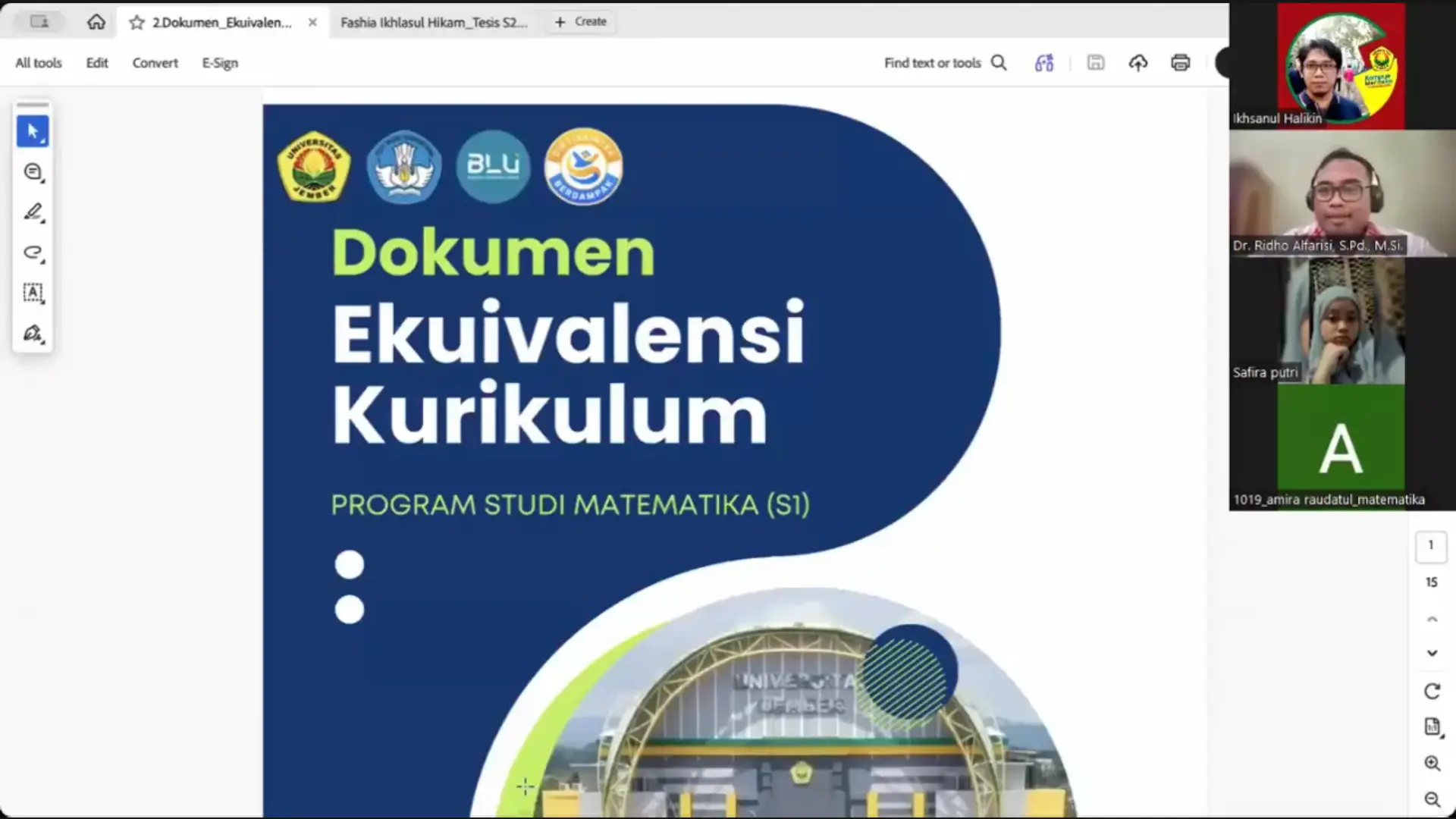 Jurusan Matematika FMIPA Universitas Jember menyelenggarakan pertemuan sosialisasi Kurikulum 2025 Program Studi Sarjana (S1) Matematika pada pukul 09.00 WIB sebagai bagian dari agenda rutin setiap semester untuk memastikan pemahaman yang seragam mengenai struktur kurikulum, sebaran mata kuliah, serta mekanisme pengambilan KRS, khususnya pada masa transisi dari Kurikulum 2021 menuju Kurikulum 2025. Kegiatan dibuka dengan pengantar dari pimpinan sesi, kemudian dilanjutkan paparan utama oleh tim kurikulum yang menekankan pentingnya keselarasan informasi antara dosen, Dosen Pembimbing Akademik (DPA), dan mahasiswa lintas angkatan (terutama angkatan aktif 2022–2025), agar tidak terjadi kekeliruan dalam pemenuhan mata kuliah wajib maupun perhitungan total SKS yang menjadi syarat kelulusan.